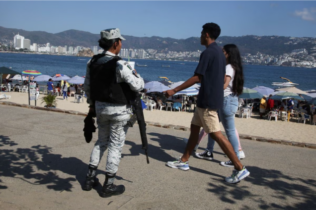 Un miembro de la Guardia Nacional vigila la playa Papagayo en Acapulco, México, el 6 de abril de 2023.