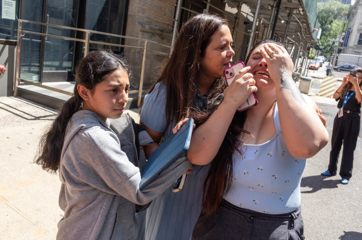 Una mujer tras enterarse de que su marido ha sido detenido por agentes del ICE, el 4 de junio de 2025, en Nueva York. Foto Andrew Lichtenstein (Getty Images)