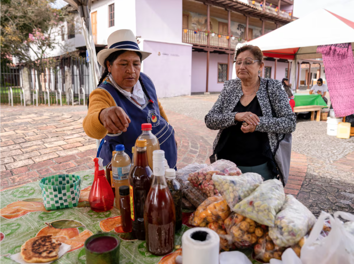 La feria —que muchas campesinas describen como una minga viva— es un espacio de intercambio directo donde pueden fijar precios justos, tejer redes de cuidado y contrarrestar lo que llaman “la lógica de los intermediarios que encarecen todo y empobrecen a quienes siembran”. Según estudios locales, estos pueden triplicar el valor de un producto. Evitarlos permite que el dinero se quede en la chakra y fortalezca el sector rural, muchas veces sostenido por mujeres.