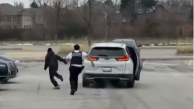 Las autoridades han publicado imágenes de la persecución policial en Mississauga tomadas por una cámara de una patrulla, cuando uno de los hampones intentaba escaparse. (PRP)