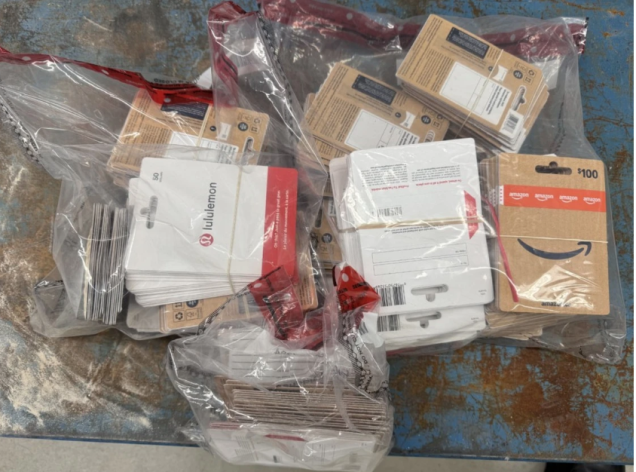 La policía informó que el sospechoso fue arrestado durante una parada de tráfico y que un registro resultó en la incautación de más de 250 tarjetas de regalo en su posesión.