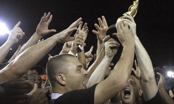 El equipo de Holanda celebra su victoria tras recibir el trofeo de la XXXIX edición de la Copa Mundial de Béisbol, después de derrotar al de Cuba por 2 carreras a 1. Foto: Arturo Wong / Efe