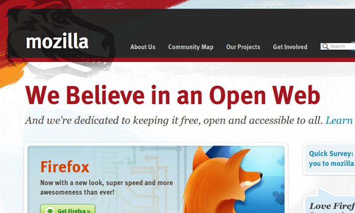 Mozilla-Firefox también se sumó a la campaña contra la SOPA. En su portada se podía leer: "Creemos en una web abierta. Y nos dedicamos a mantenerla libre, abierta y accesible"