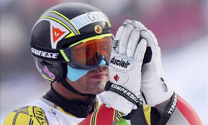 El canadiense Jan Hudec, tras lograr el primer puesto en la prueba de descenso de la Copa del Mundo de esquí alpino que se disputa en les Houche, cerca de Chamonix (Francia). Foto: Olivier Hoslet / Efe