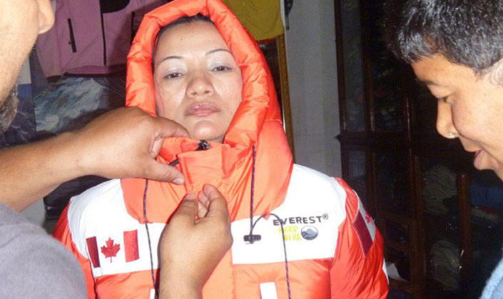 Shah-Klorfine es la primera mujer canadiense de origen surasiático en colgar la bandera de Canadá en el pico más alto del mundo.