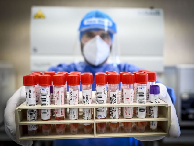 CATANIA, ITALY – MAY 22: Test tubes containing blood samples to detect the presence of Covid-19 are seen in the molecular biology laboratory of Cannizzaro Hospital on May 22, 2020 in Catania, Italy. Restaurants, bars, cafes, hairdressers and other shops have reopened, subject to social distancing measures, after more than two months of a nationwide lockdown meant to curb the spread of Covid-19. (Photo by Fabrizio Villa/Getty Images)