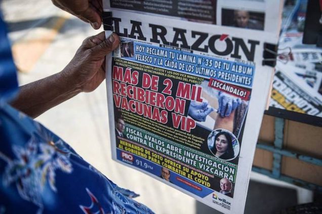 “El escándalo de las vacunas podría agitar las elecciones generales de Perú, que se celebrarán el 11 de abril, al beneficiar a candidatos que prometan un quiebre radical con el sistema político actual”, dice a The New York Times Alfredo Torres, jefe de la encuestadora Ipsos.
