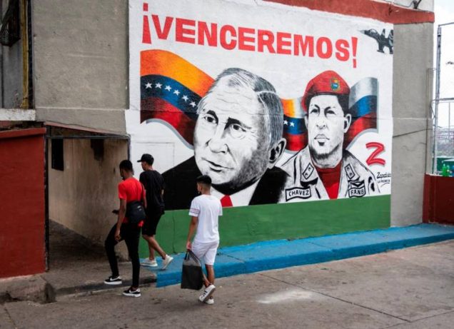 Colectivos de izquierda levantaron en una barriada de Caracas, Venezuela –bastión del chavismo– un mural en respaldo a Rusia, nación fuertemente cuestionada por la incursión a Ucrania. En la fachada se ven un Vladimir Putin sonriente junto al fallecido Hugo Chávez y, en la esquina, la “Z” que se ha convertido en un símbolo de la “victoria” para quienes apoyan la invasión al país europeo.