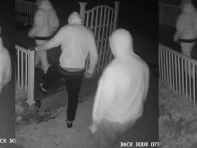 La Policía de la Policía de Caledon (OPP) solicita la ayuda del público para identificar a estos cacos captados en un video de vigilancia en relación con un allanamiento a mano armada ocurrido el lunes por la noche. Foto: OPP de Caledon.