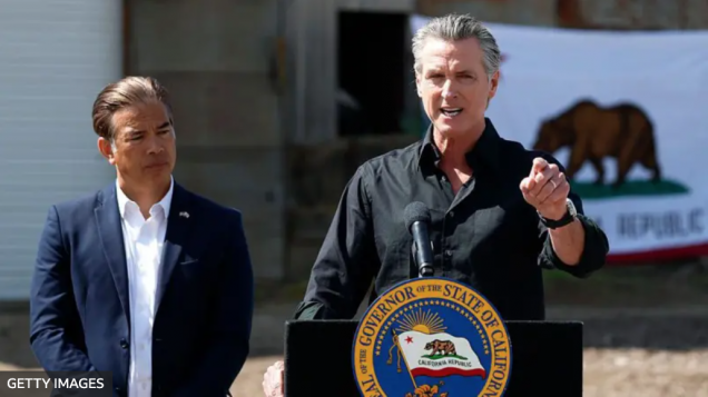 Newsom y el fiscal general del estado, Rob Bonta, anunciaron la demanda en una conferencia de prensa en una finca de almendras, uno de los cultivos más importantes de California.