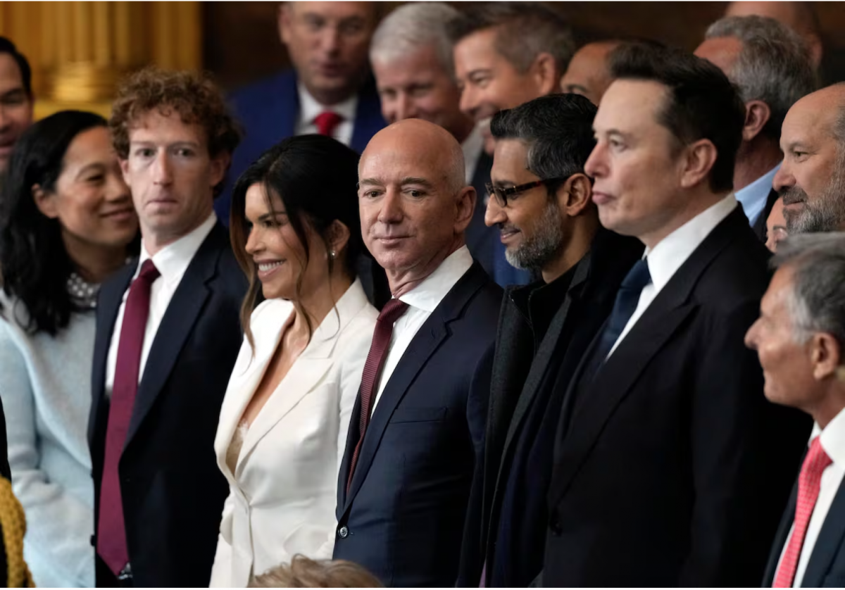 Asistentes a la investidura de Donald Trump, entre ellos Mark Zuckerberg, Jeff Bezos, Sundar Pichai y Elon Musk, en el Capitolio, el pasado 20 de enero. Foto JULIA DEMAREE NIKHINSON / POOL (EFE)