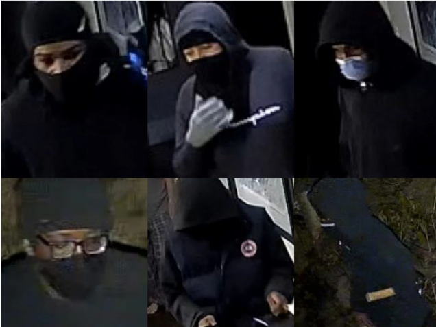 Otros dos hombres permanecieron afuera y los seis fueron vistos saliendo en un sedán oscuro.