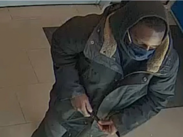El asaltante descrito como de entre 20 y 30 años, de aproximadamente 1,75 metros de altura, con cabello corto y negro y tez oscura. Vestía una mascarilla quirúrgica azul, una chaqueta negra con cuello forrado de piel, una sudadera negra con capucha, pantalones gris oscuro, zapatillas New Balance blancas sin cordones y una bolsa de compras azul.