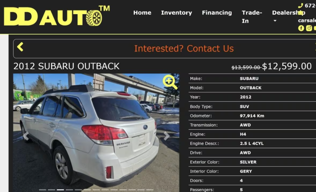 Steve Andrews llevaba un tiempo buscando un vehículo usado por internet cuando se topó con un concesionario registrado en Burnaby, British Columbia, que anunciaba un Subaru 2012 que parecía ser el adecuado.