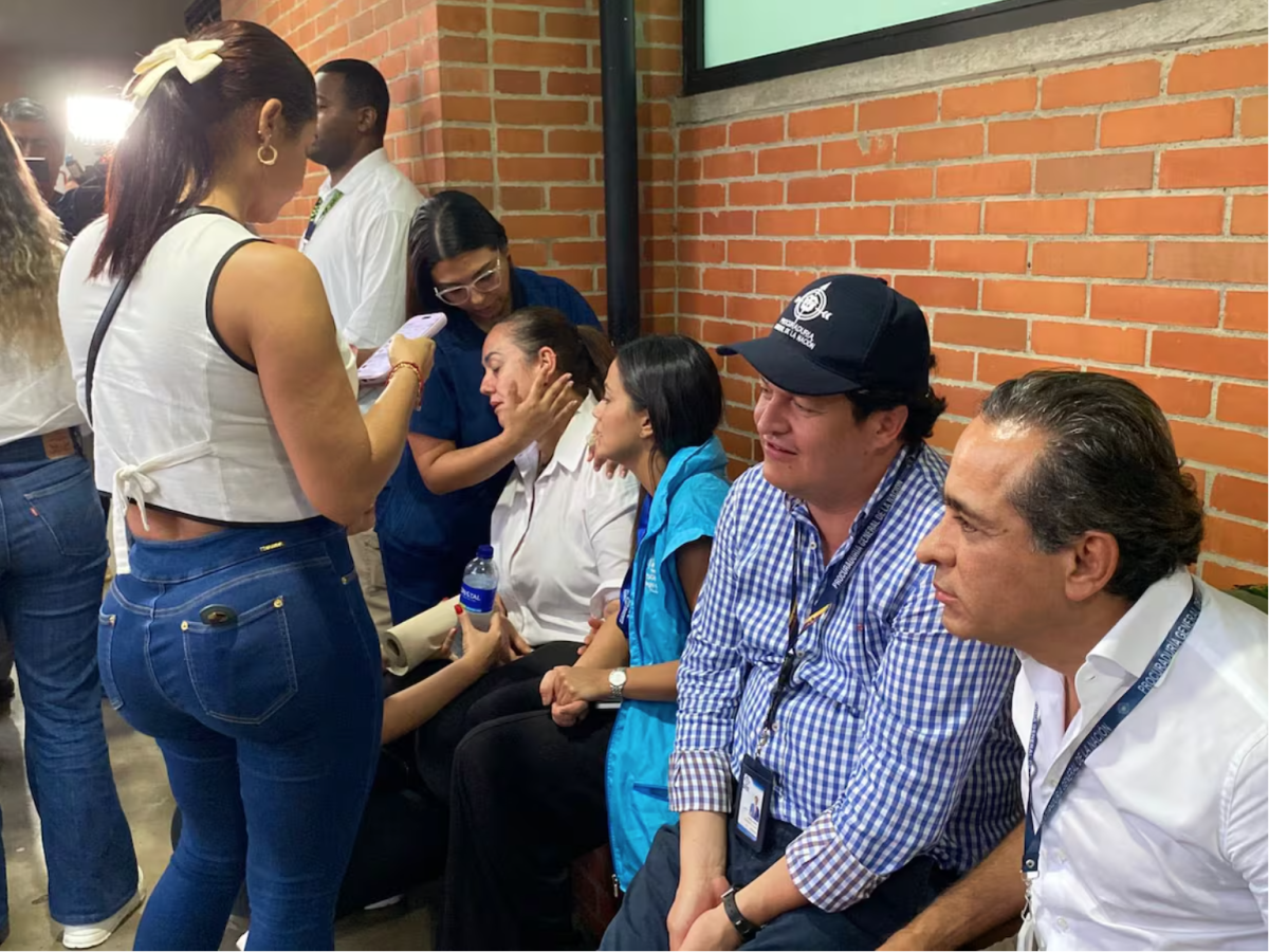 Familiares del niño secuestrado en Cali, Colombia, el 21 de mayo de 2025. Foto Personería de Cali