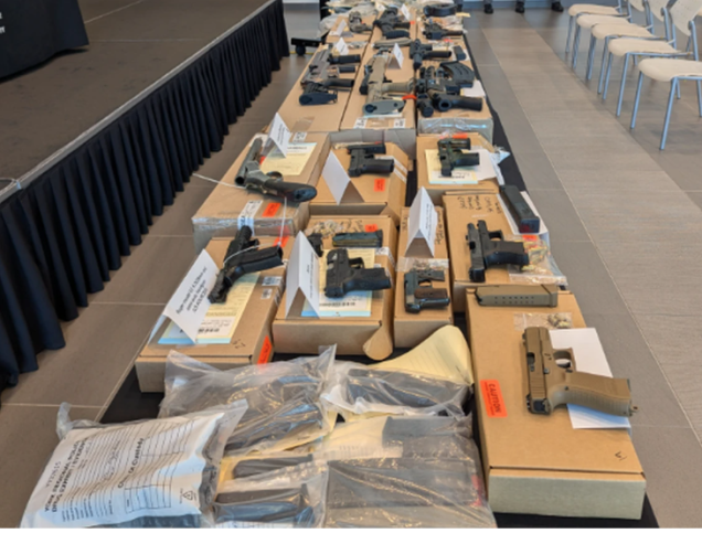 Seis delincuentes enfrentan múltiples cargos tras la incautación de 15 armas de fuego y drogas valoradas en $215,000 durante una investigación conjunta de la policía de York y la OPP, conocida como Proyecto Madruga. Foto: Policía Regional de York
