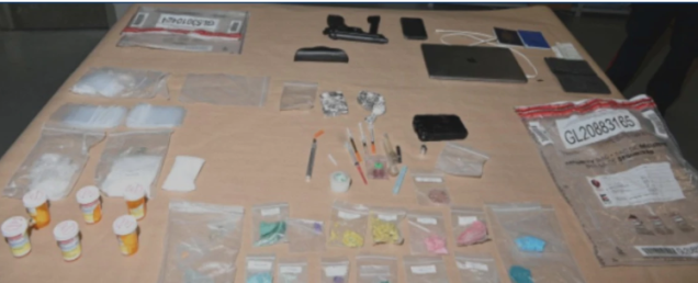 La Policía Regional de Durham publicó esta imagen de drogas y otras pruebas incautadas tras un arresto en Newcastle. Foto: Handout / Policía Regional de Durham.