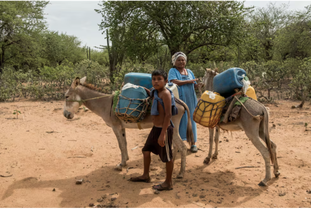 Poblaciones wayuu, en La Guajira, Colombia, se ven obligadas a realizar largos desplazamientos para conseguir agua. Foto Antonio Lopez Diaz