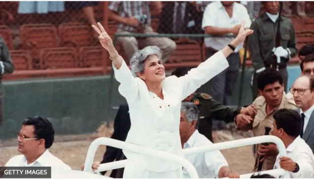 Fuente de la imagen,Getty Images.  Chamorro fue la primera mujer de América Latina en ser electa al cargo de presidente.