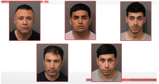 Los cinco hispanos arrestados fueron identificados como Luis Alberto Rodríguez Martínez, de 27 años, residente de Toronto; Francisco Felipe Rodríguez Martínez, de 22 años, residente de Toronto; Carlos Alberto Rodríguez Vera, de 46 años, sin domicilio fijo; Mike Sebastián Rodríguez Martínez, de 25 años, residente de Vaughan; y Wilson Mejía Arango, de 49 años, residente de Toronto.