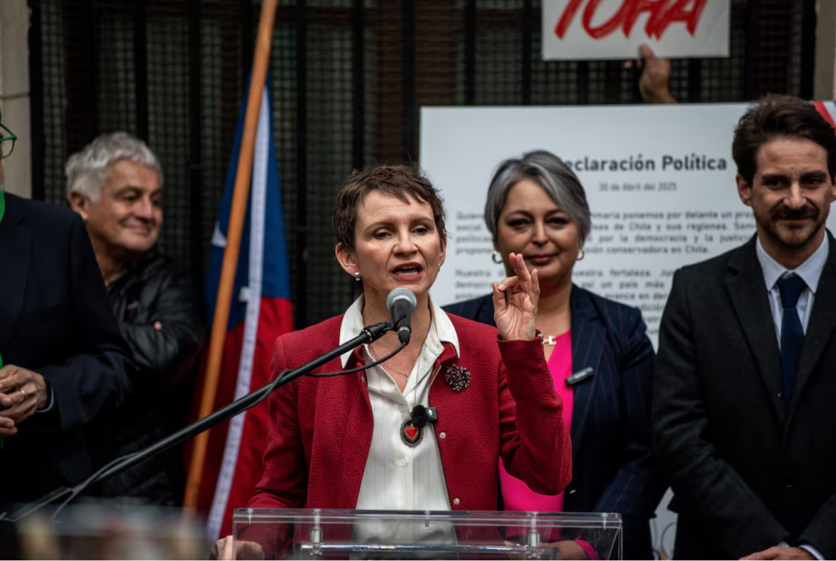 Carolina Toha, candidata presidencial, habla frente al Servicio Electoral de Chile en Santiago, en abril de 2025. Cristobal Olivares (Bloomberg)