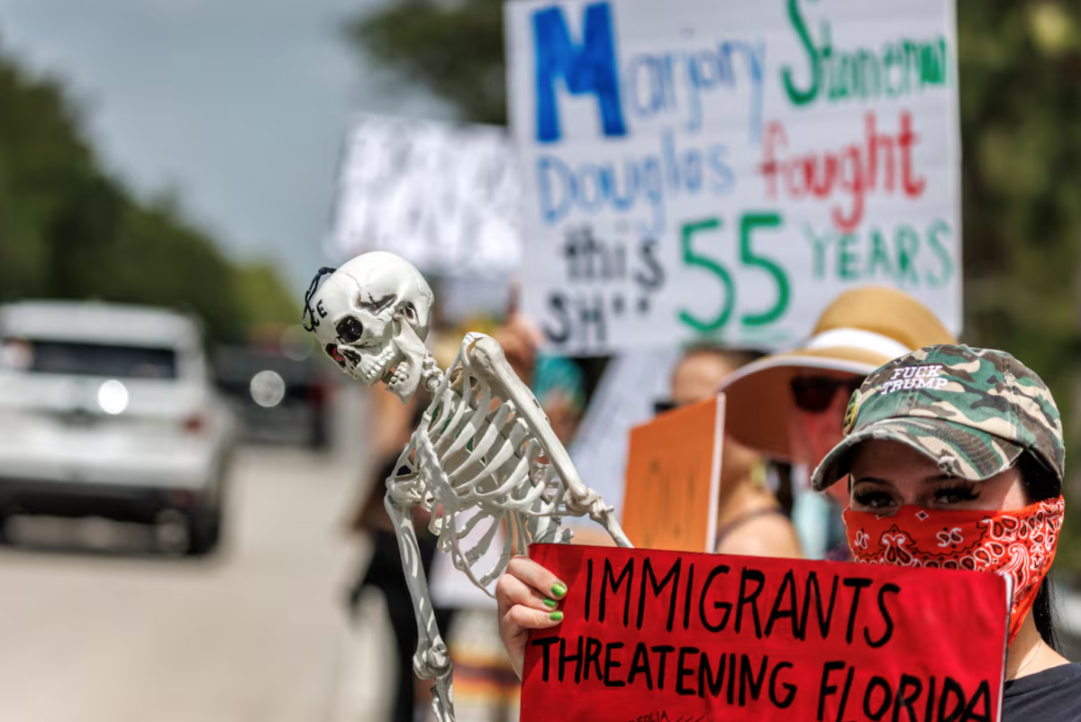 Protesta ‘Stop Alligator Alcatraz’ en Florida, Estados Unidos, el 28 de junio de 2025. Foto CRISTOBAL HERRERA-ULASHKEVICH (EFE)