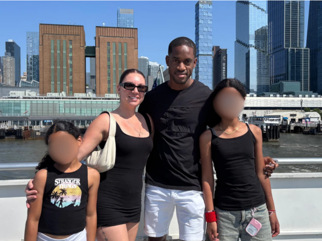 Yosniel Alginis Villalón López con su esposa Stéphanie Penta y dos hijos de su anterior relación. Villalón López fue detenido por el ICE en la frontera entre Canadá y Estados Unidos cuando intentaba reunirse con Penta en Quebec.