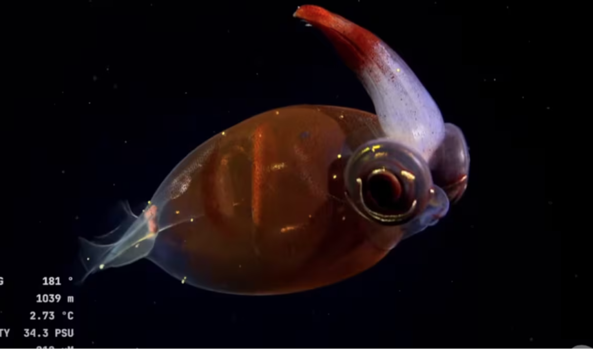 Captura de la transmisión que explora la vida marina en Argentina a más de 3900 metros de profundidad.