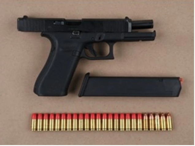 La Policía Regional de Peel informó que los agentes detuvieron un vehículo el 23 de agosto cerca de Matheson Blvd. y Sismet Rd., donde encontraron una Glock 17 cargada con un cargador extendido y drogas.