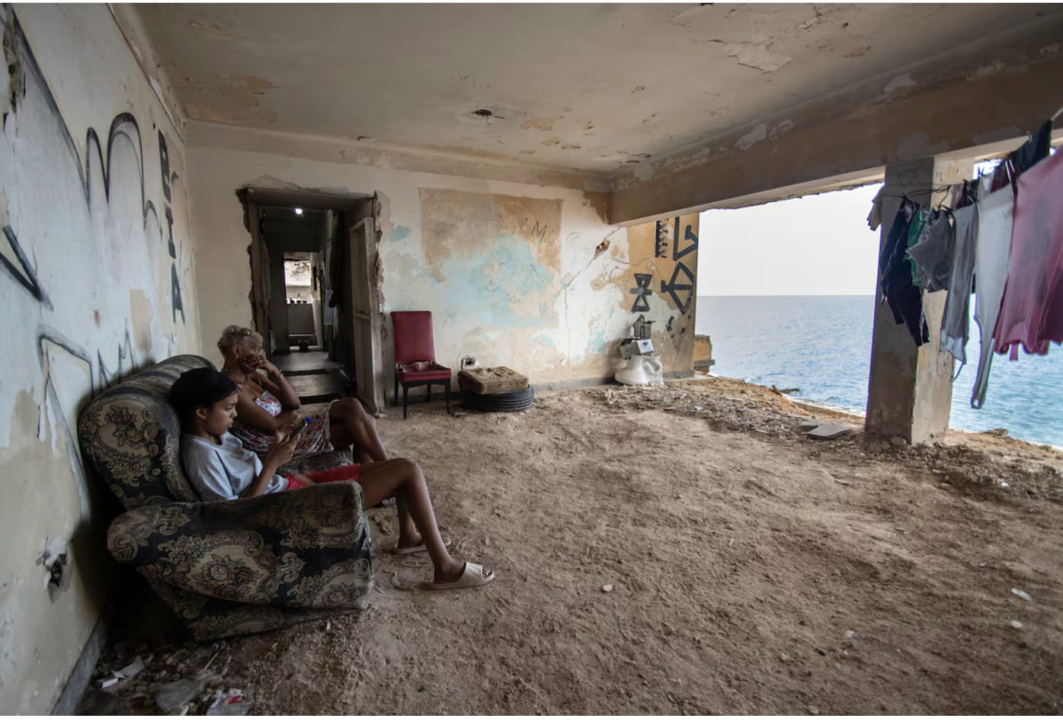 Ahora, Villalón vive en el apartamento de unos dueños que no conoce, un espacio sin ventanas ni puertas, de frente a la costa norte y azul, donde ha acomodado ollas para cocinar, un colchón o algunos muebles que le regalaron los vecinos, gente como ella, que tampoco tenía dónde vivir y se acuarteló en el inmueble. Allí, aún así, conserva un retrato de Fidel Castro. “Este es mi jefe”, aclara antes que nada. Vivía en Santiago de Cuba, al oriente de la isla, pero hace un tiempo decidió mudarse a La Habana. “Allá no hay nada, no hay dónde trabajar, tengo que salir adelante”, asegura. El desempleo en el país se mantiene en el 12%.