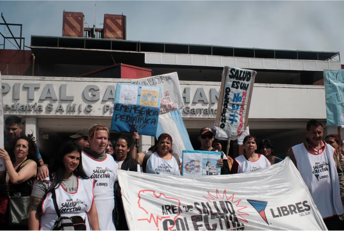 Trabajadores del Hospital Garrahan protestan en contra del veto a la salud pública en Buenos Aires. Foto Tiago Ramírez Baquero