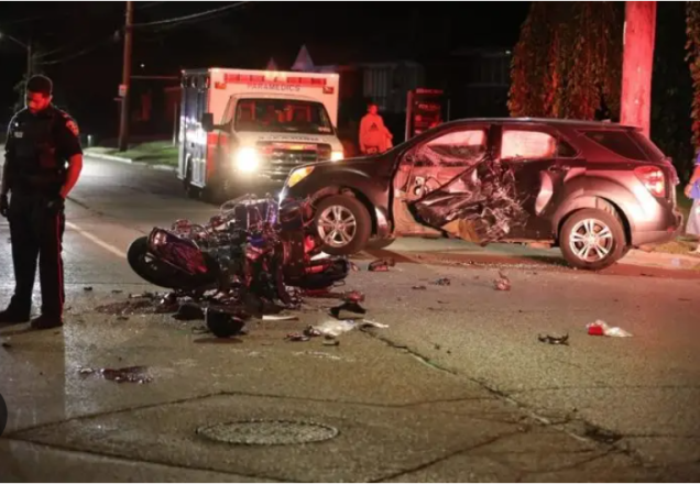 “Un vehículo circulaba hacia el oeste por Bloor St. W. y giraba a la izquierda hacia una plaza cercana”, declaró la policía en un comunicado emitido el sábado. “Una motocicleta Harley-Davidson circulaba a alta velocidad hacia el este y chocó contra el sedán”.