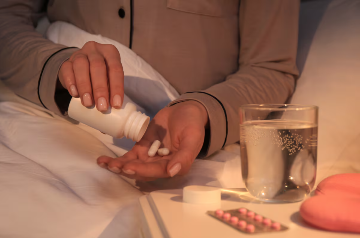 Una mujer toma pastillas para dormir. Foto Liudmila Chernetska (Getty Images)
