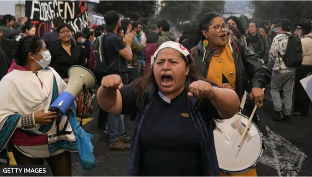 Tras el crecimiento de las protestas, que el gobierno ha calificado como violentas, Noboa extendió el sábado el estado de emergencia a 10 de las 24 provincias del país y suspendió durante sesenta días el derecho a la libertad de reunión.