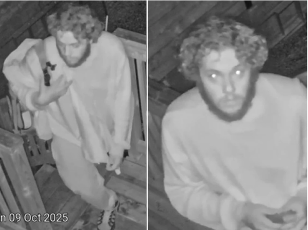 Se reporta que, aproximadamente a las 2:50 a. m., el ladrón fue grabado en vídeo intentando entrar a una vivienda por la puerta trasera.