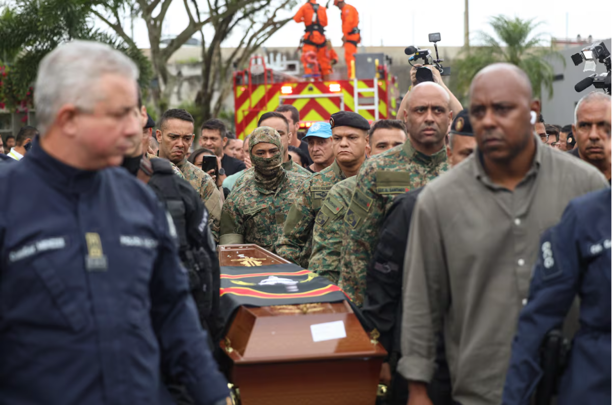 Funeral de uno de los cuatro policías fallecidos en la operación contra el Comando Vermelho, en Río de Janeiro, este jueves. Foto DPA vía Europa Press (DPA vía Europa Press)