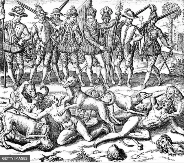 Los perros fueron empleados para amedrentar la resistencia indígena e infligir castigos.