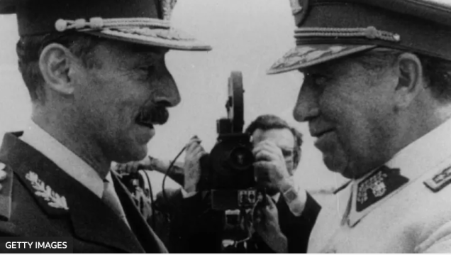 Los generales Jorge Rafael Videla de Argentina y Augusto Pinochet de Chile en un encuentro en 1978.