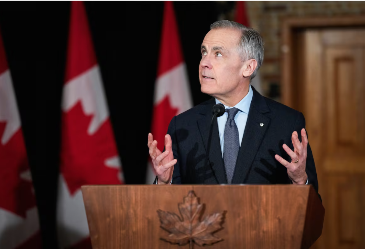 El primer ministro Mark Carney, durante una rueda de prensa en Quebec este jueves. Foto Mathieu Belanger (REUTERS)