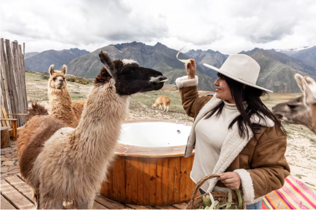 Una mujer alimenta llamas en Cusco, Perú. Artur Debat (Getty Images)