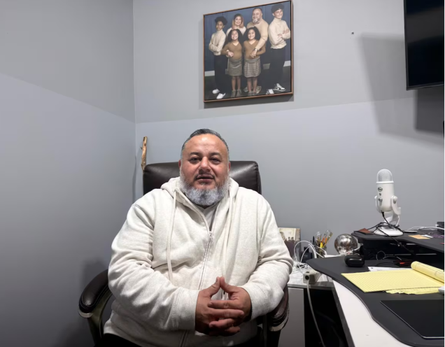 El religioso tiene 46 años. Además de pastor cristiano, es empresario. Se dedica al negocio de los seguros, que está viéndose afectado por el despliegue de Trump: calcula que los ingresos han caído un 50% en estos dos meses, desde que empezó la toma de Minneapolis. “La gente pierde sus trabajos y no puede pagar la cobertura”, explica en su despacho, sentado bajo una foto en la que se le ve con su esposa y los tres hijos de ambos, además de con el primogénito, fruto de un matrimonio anterior. Sobre la mesa, descansa el micrófono que usa en su popular pódcast. Tacos al pastor, se llama, y en él comenta los asuntos de actualidad de las Twin Cities, conurbación que sale de sumar las ciudades de Minneapolis y St. Paul, separadas por el incipiente curso del río Mississippi.