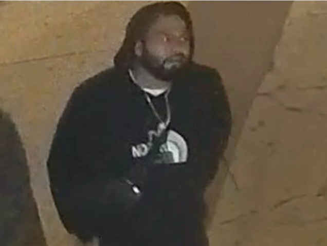 El buscado, de raza negra, tiene unos 30 años, mide 1,80 metros, es de complexión mediana y lleva barba negra. Fue visto por última vez vistiendo una sudadera negra con capucha de North Face, pantalones negros y una cartera negra.