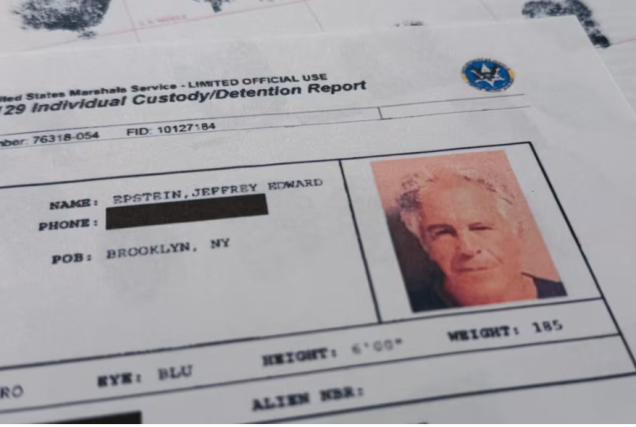 Documento desclasificado del ‘caso Epstein’ donde se ve una ficha de la detención en 2019. Foto Jon Elswick (AP)