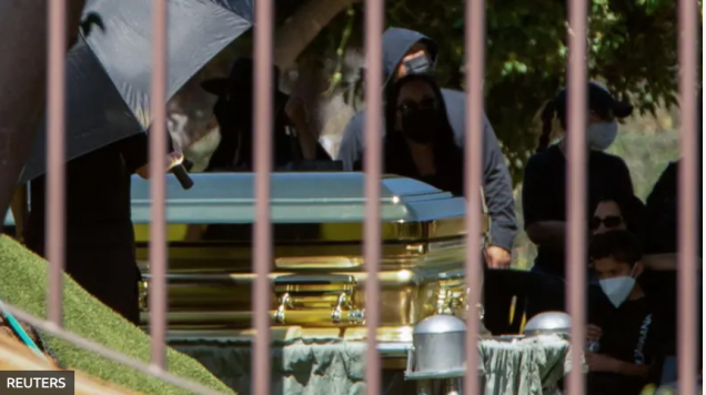 Después de una ceremonia de una hora, los dolientes, muchos de los cuales ocultaron sus identidades usando mascarillas, siguieron el ataúd mientras lo llevaban a la tumba.