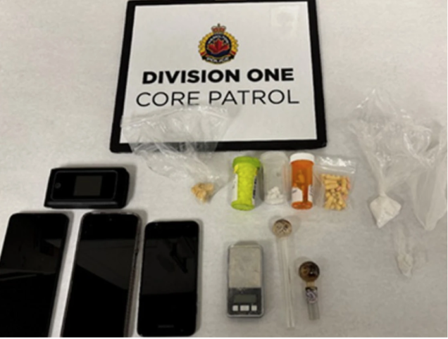 Un registro posterior al arresto resultó en la incautación de una cantidad de drogas ilegales y parafernalia relacionada, incluyendo 227 pastillas de Dilaudid, 8.16 gramos de fentanilo, 2.5 gramos de metanfetamina, una báscula digital con residuos de drogas y dos teléfonos celulares.