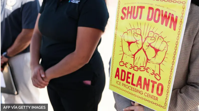 Fuente de la imagen,AFP vía Getty Images. El gobierno de México se suma a una demanda ya en marcha contra ICE por el centro de procesamiento de Adelanto, en California.
