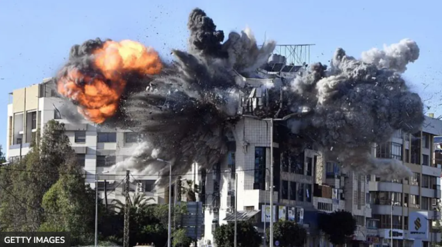 Fuente de la imagen,Getty Images. Equipos de rescate buscan víctimas del ataque israelí.