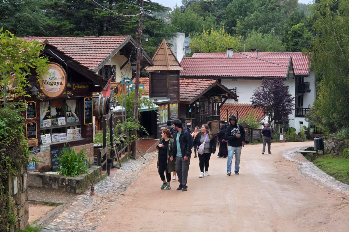 Visitantes en una de las calles peatonales de La Cumbrecita, Córdoba, (Argentina), el 10 de marzo. Foto Analía Llorente