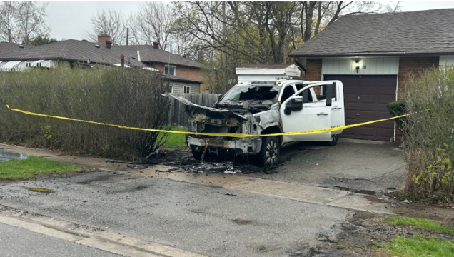 Otra grúa incendiada en la entrada de una casa en Brampton, posible vínculo con incendios recientes