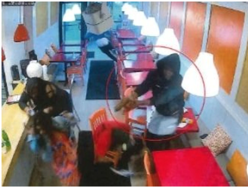 El amigo de la víctima, Thulani Moncrieffe-Belmar, respondió al fuego. En el tiroteo que siguió, grabado en video, Kazumba recibió un disparo en la mano y huyó, seguido poco después por el otro pistolero.